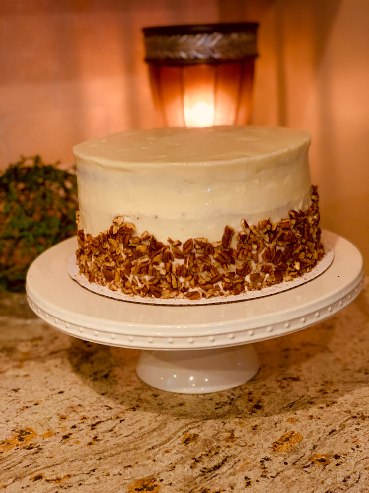 A crowd favorite! A traditional 3 layered cake with carrots, pineapple, and coconut with cream cheese frosting.